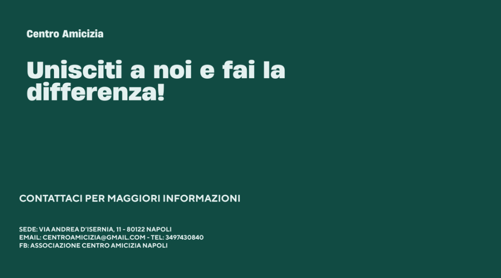 Benvenuti al Centro Amicizia dove ogni incontro è una opportunità, ogni persona è una risorsa e l’amicizia è il nostro valore più grande.